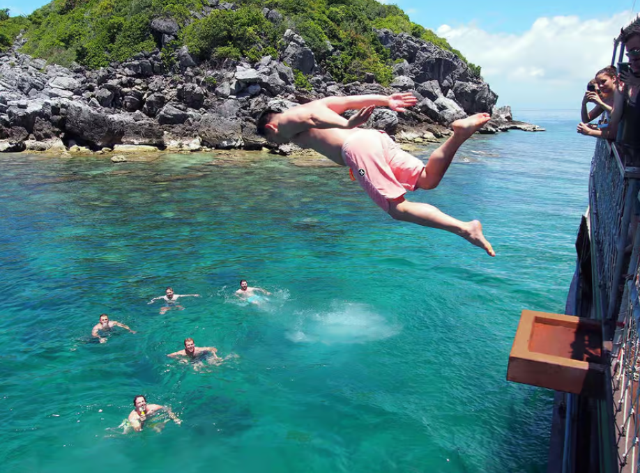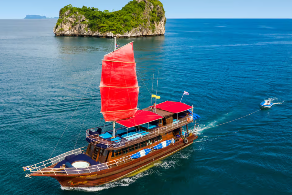 Provider: Tour Koh Samui Avoid the crowds on this relaxing sailing cruise aboard a luxurious yacht to the limestone islands of Mu Ko Angthong Marine...