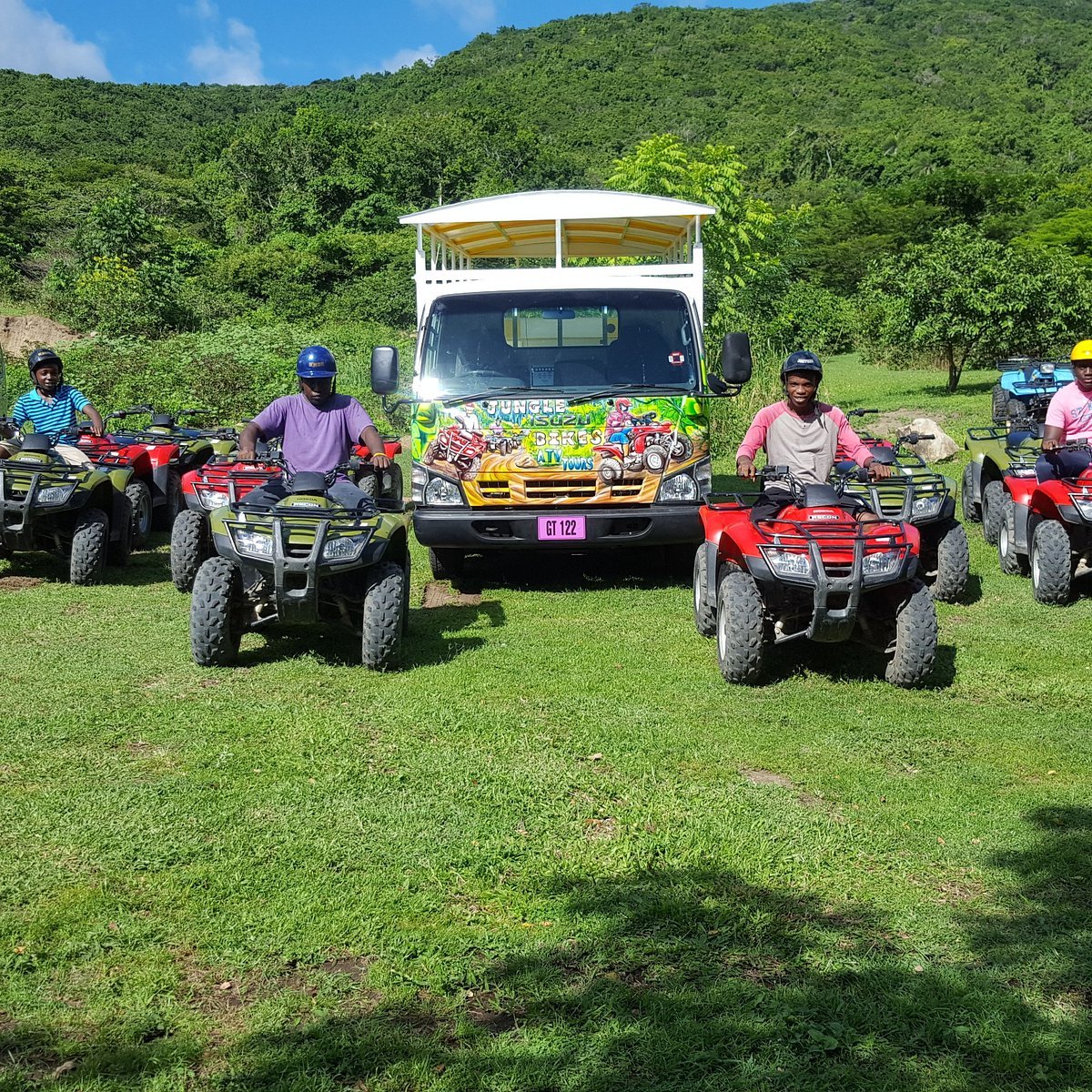 Explore the breath-taking views of our countryside St. Kitts while operating your very own ATV. It starts with a pick up from either the port or your hotel of choice at either (8:30, 11:30 or 2:30), we then take approximately 15 – 20 minutes to reach the ATV base where you will be greeted by our knowledgeable and experienced guides. Disclaimer forms will then be distributed which outlines the rules and regulations which we abide by. The tour guides will then demonstrate how to operate the ATV. Gears will then be issued and then off we go into the Jungle and sugar cane life making stops which will give you picturesque views of Mount Liamigua, Brimstone Hill Fortress and Old Sugar Estate. After reaching back to the ATV base hot, tired and extremely dusty, your driver will be there to escort you to South Friars Bay and will return for you at the pre-arranged time to take you back to the hotel or cruise ship of your choice.